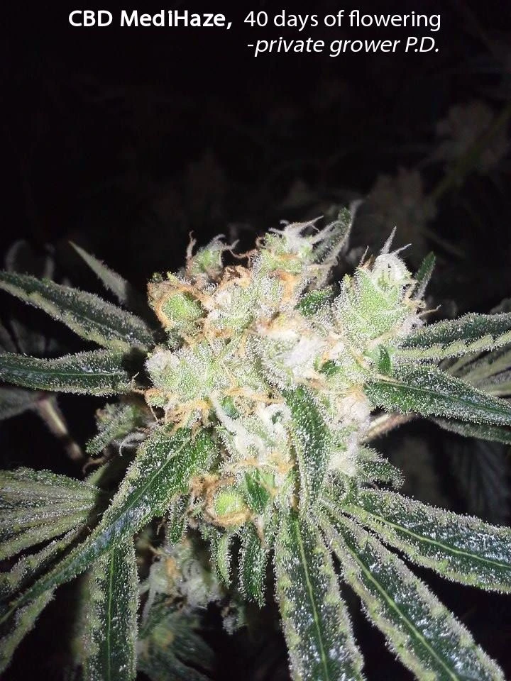 CBD Medihaze is a sativa dominant high CBD enriched strain and one of the latest of CBD crew new releases for 2013. CBD Medihaze is Super Silver Haze crossed with old time classic of Nevil Haze then bred with the CBD parents for enrichment. It has taken us some time and some testing but the CBD-crew has verified the ratios of CBD to THC as minimum 1:1, but with many of the progeny seeds going up to 2 CBD : 1 THC as well !