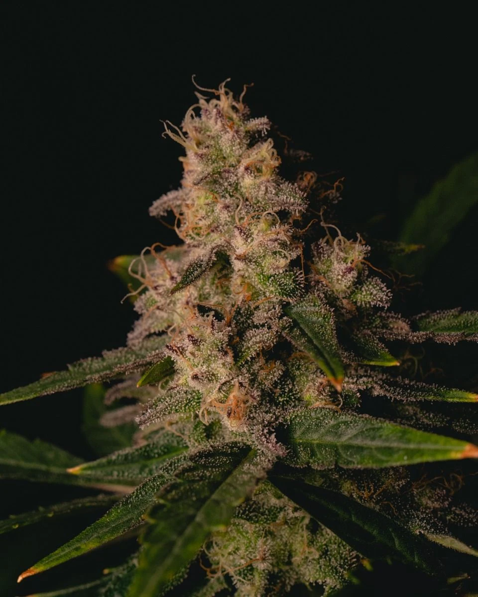 Garlic Cookies is an indica dominant strain that offers robust specimens with a branched structure with a medium-high internodal distance. It flowers into light green, spade-shaped buds that are dusted with white trichomes and curly orange hairs. It isn’t a very heavy producer but the quality of the flowers is worth the effort. The average flowering time lasts for about 8 weeks.