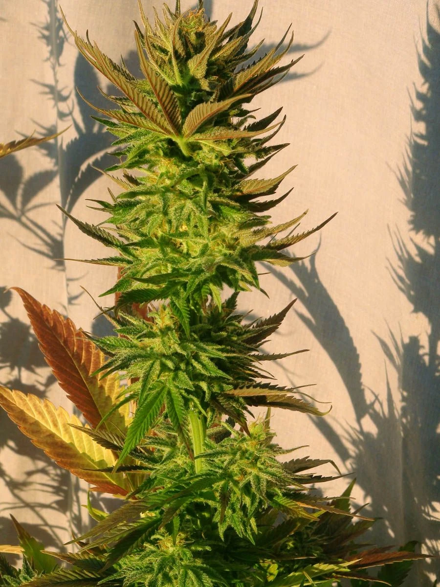 The structure is a bush-type one, with thick and productive lower branches. Flowers are compact, orange and covered in trichomes. It is highly resistant to insect plagues and fungal diseases.