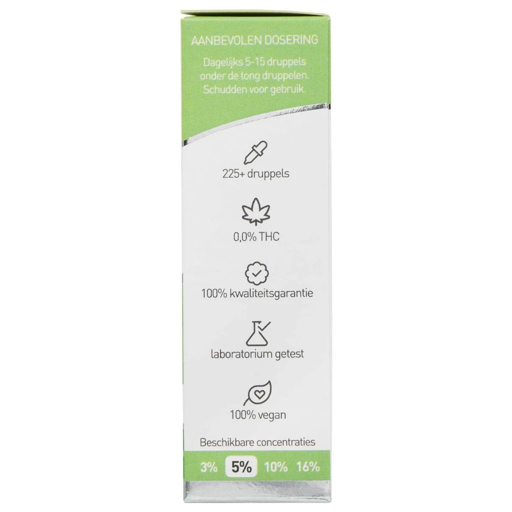 Full spectrum CBD oil with a 5% concentration, a natural flavor profile and 0,0% THC.
