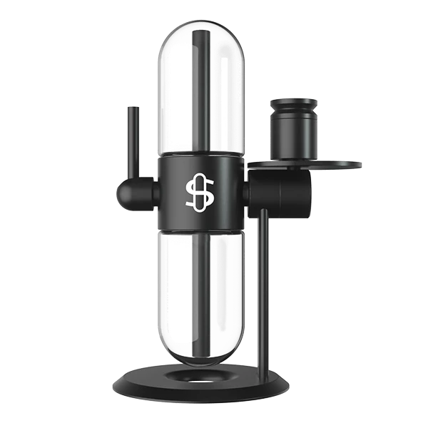 Designed for functional versatility, the Stündenglass Gravity Infuser is a complete set that includes an aluminum bowl kit and a glass liner, but can also connect to any smoking or vaporization device with a 14mm male joint. Using only fluid physics, a steady stream of smoke is force-air delivered through a 45° adjustable mouthpiece, providing an entirely contactless consumption.