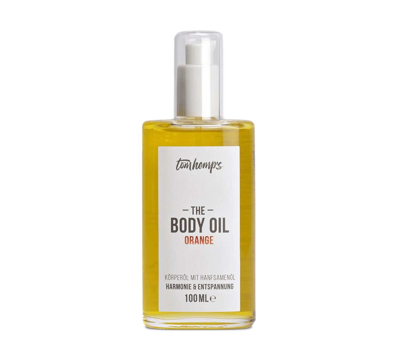 The hemp seed oil-based The Body Oil Orange ensures elastic and supple skin, provides the moisture it needs and gives it an irresistible freshness. The essential oils of the citrus fruit orange have a circulation-promoting effect and thus support not only superficially, but in the holistic promotion of a healthy, strengthened and fresh skin appearance. The almond oil contained is particularly suitable for irritated and dry skin. It is rich in vitamin E, A and essential fatty acids such as omega-6 and omega-9. Our body oil based on hemp seed oil is quickly absorbed, provides lasting care and supplies everything that healthy skin requires.